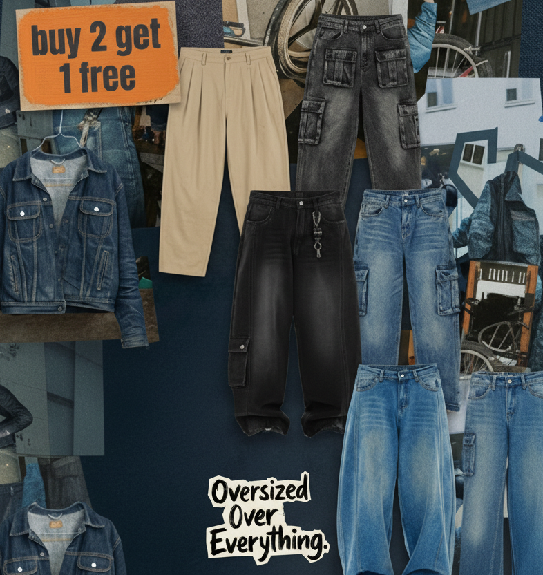 Men's Distressed Cargo Baggy Jeans – Vintage Wash