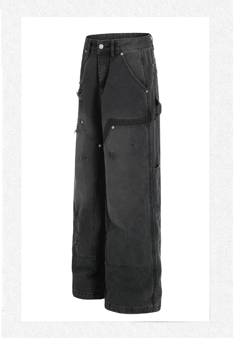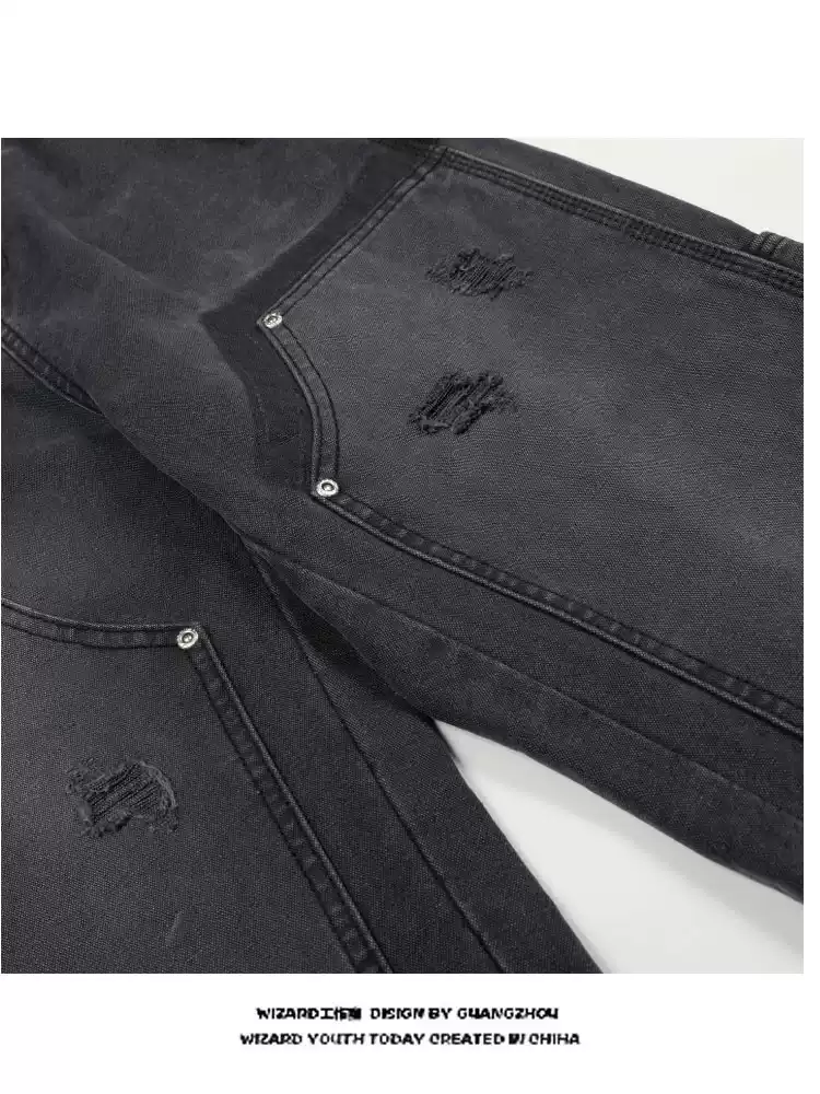 Distressed Design: Features intentional rips and worn details for an authentic vintage aesthetic.